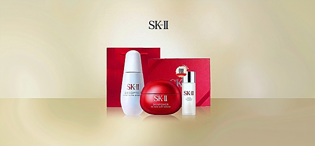 去掉这张海报上所有额外文字,只保留SK-II产品本身,保留产品瓶身原有的品牌文字,背景保持浅淡渐变风格,保持产品构图不变详情