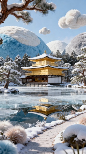 软3D风毛绒雪景中,暖色餐车飘出热饮蒸汽,蓬松云朵与毛发生长感植物环绕,萌趣十足的圣诞氛围。