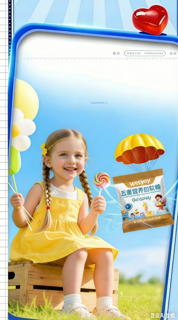 清新卡通3D风,微缩艺术展现61儿童节,集装箱与热气球营造欢乐氛围。
