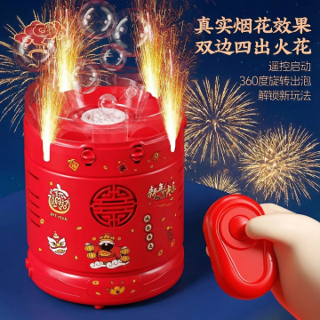 喜庆红与柔白交织,复古胶片质感中烟花绽放,光影流动间营造梦幻唯美氛围,双色设计风融合轻拟物元素,实景感十足的节日瞬间。