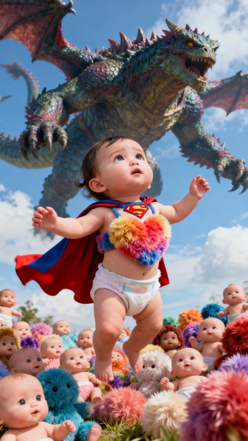 甜美潮流city pop风,漫画霓虹灯色彩,手持气球与吉他,街头梦幻氛围。