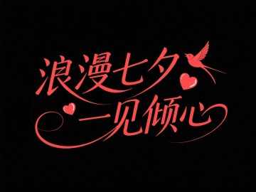 带有光影效果的“七夕”艺术字体,字体边缘呈现出柔和的光晕,仿佛在星空下闪耀,可加入流星、银河等背景元素,营造出梦幻神秘的氛围。