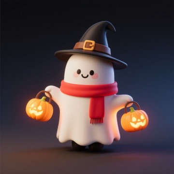 插画风融合哥特与卡通,拟人化小幽灵温馨阅读,水彩质感营造神秘故事感,南瓜烛光点缀万圣节氛围。