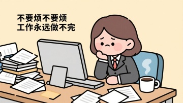 卡通感插画风,展现职场压力,简洁线条与柔和色彩,幽默表达工作烦恼。