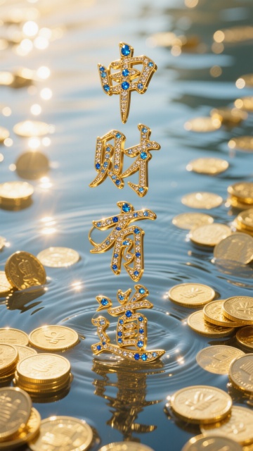 奢华鎏金风,3D立体大字设计,镶嵌宝石,尽显高端大气,寓意财富之道。