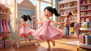 软3D风格的可爱女孩,大眼萌脸搭配清新自然背景,卡通感十足,柔和色调传递舒适氛围,T恤上的四叶草呼应幸运主题。