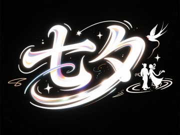 浪漫插画风,霓虹灯大字“心系七夕”,梦幻夜景,情侣相拥,燕子飞翔。
