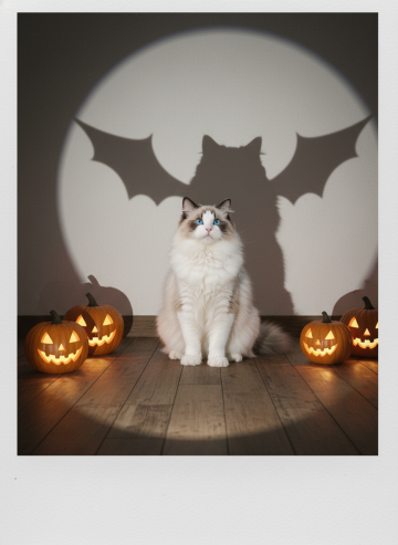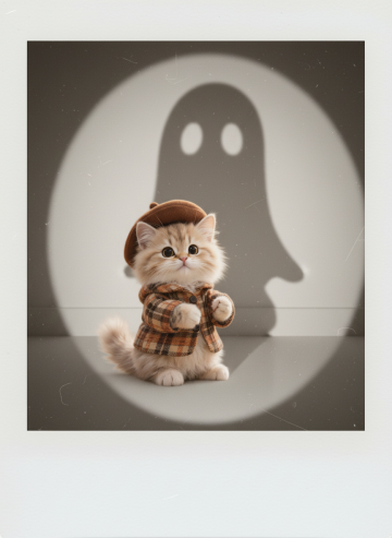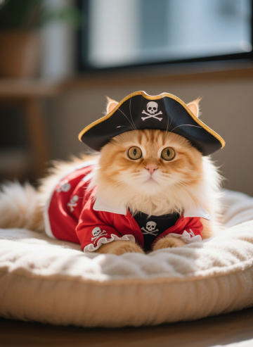 可爱感十足的拟人风猫咪,身着3D质感海盗装,毛发生长自然蓬松,面料细节精致,萌趣十足,万圣节节日氛围浓厚。